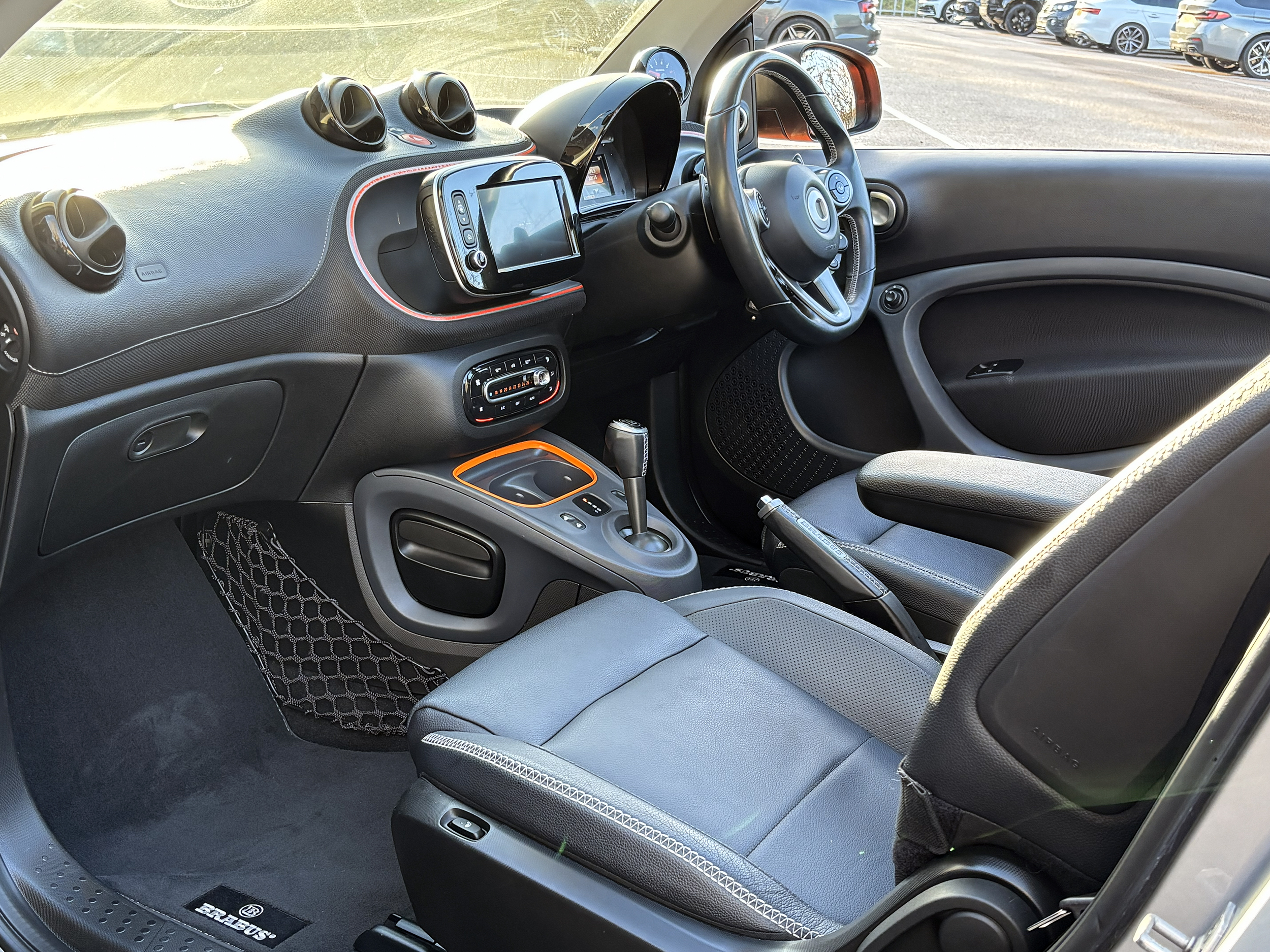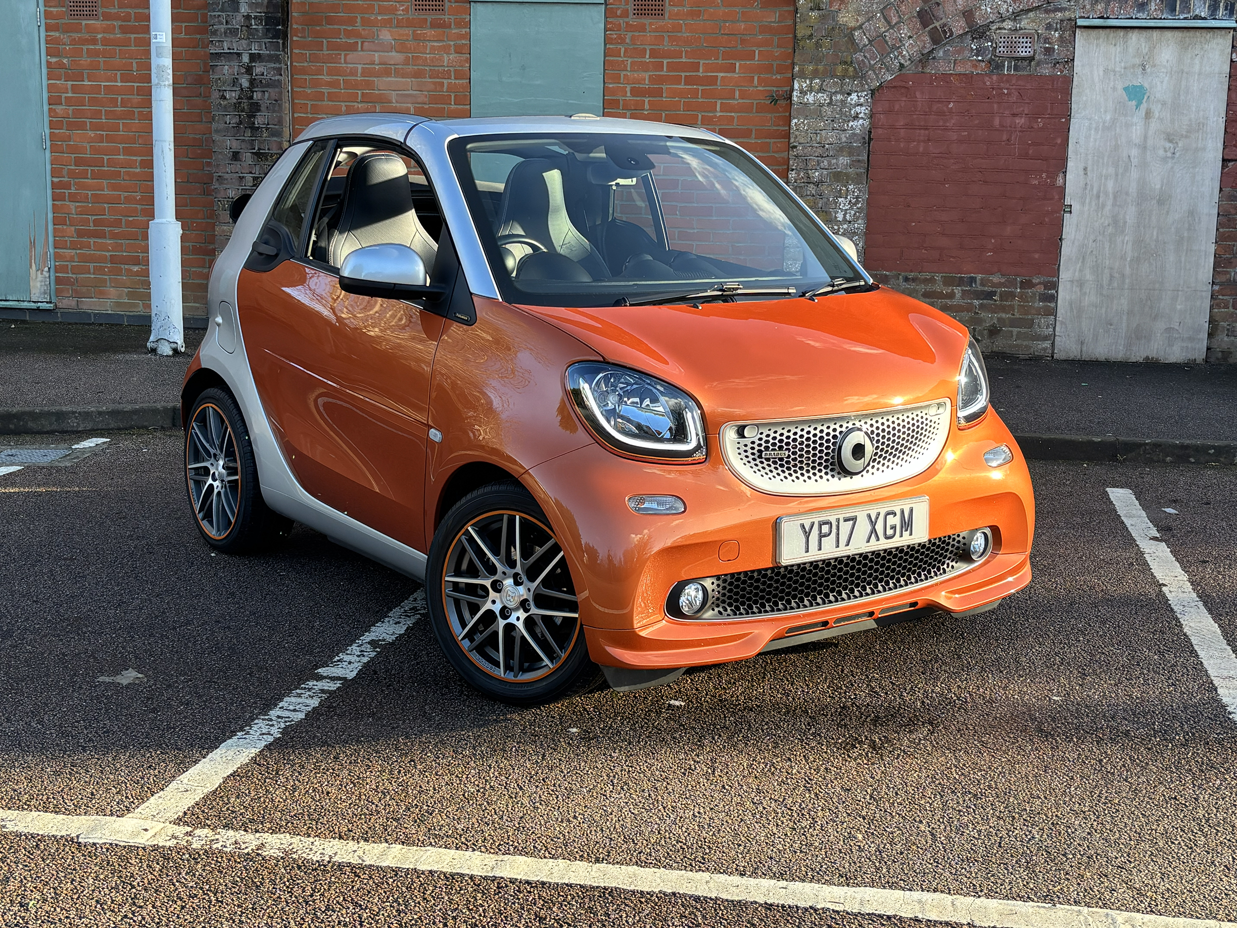Brabus Features: Brabus exhaust, 16/17-inch BRABUS Monoblock IX alloy wheels, BRABUS rear apron, BRABUS front spoiler in the body colour, Rear diffuser in matt grey. BRABUS performance sports suspension lowering the vehicle by 10 mm.